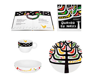 Los textos de Isabel Minhós Martins y las ilustraciones de Madalena Matoso le dieron el tono a la creación de una colección que incluye plato, tazón, dos jarras y una hucha y que, tal y como el libro, se pensó para dar la bienvenida a los bebés.