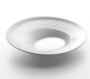 In this set of great Symbolism, spanish designer Santos Bregaña evokes the four elements - fire, earth, air and water - through four geometric strategies: solar, lunar eclipse and spiral. A conceptual work that plays on the composition, proportions, structures and limits in the handling of the material, providing light and thus amplifying the qualities of all revenues. Very distinct pieces, joined by an organic balance that will leave no-one indifferent.