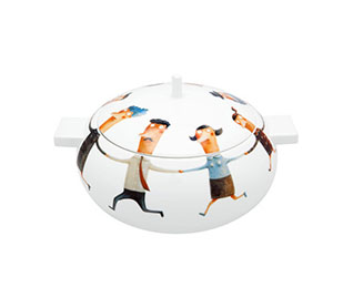 The first piece of the new collection 1 +1 = 1, is a collaboration between writer Valter Hugo Mãe who chose his book "O filho de mil homens" (The son of a thousand men) and invited illustrator João Vaz de Carvalho to give life to his work on a Vista Alegre piece.