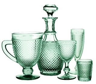 The first known reference to these glasses known as "biquinhos" (spikes) is from a catalogue of the Nova Fábrica de Vidros Marinha Grande (New Marinha Grande Glass Factory) - Ivima, 1901. This type of glass, set in the universe of diamond-tip manufacturing, was produced in the nineteenth century, through manual cutting techniques.