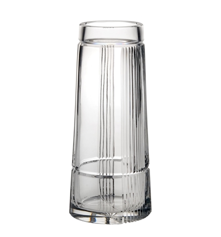 Florero Piet. Esta contemporánea colección en cristal 24% juega, gracias a una ingeniosa talla, con los contrastes entre zonas lisas y zonas con textura, combinadas con la simplicidad de las composiciones visuales típicas del pintor Piet Mondrian.